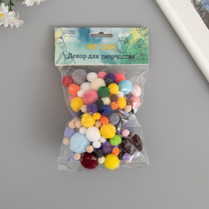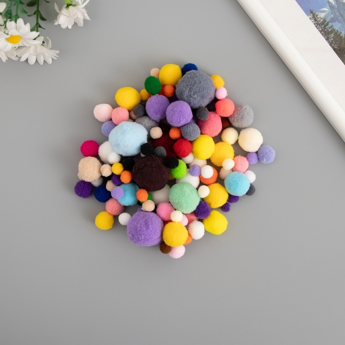Декор для творчества "Помпончики. Яркие краски" d=1-3 см набор 135 шт