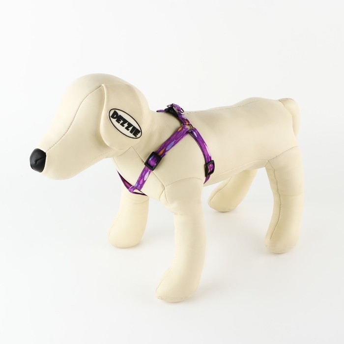 Текстильная шлейка регулируется. Поводок крепится к металлическому кольцу карабином. Шлейка исключает побег животного, если правильно подобрать размер и отрегулировать ремни.