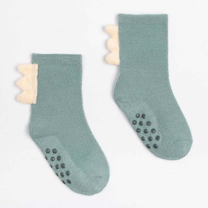 Носки детские махровые со стопперами MINAKU, цвет зеленый, размер 14-16 см