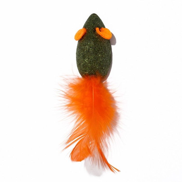 Мышь для кошек из прессованной кошачьей мяты с хвостом из перьев, 5 см