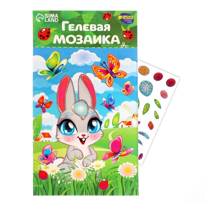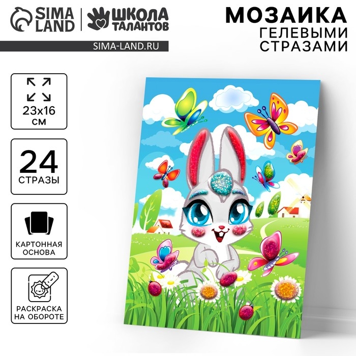 Аппликация гелевыми стразами для детей. Мозаика «Зайчик на полянке», набор для творчества
