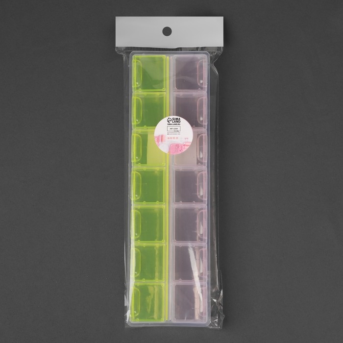 Органайзер для рукоделия, 14 отделений, 21,5 × 6,5 × 2,3 см, цвет МИКС