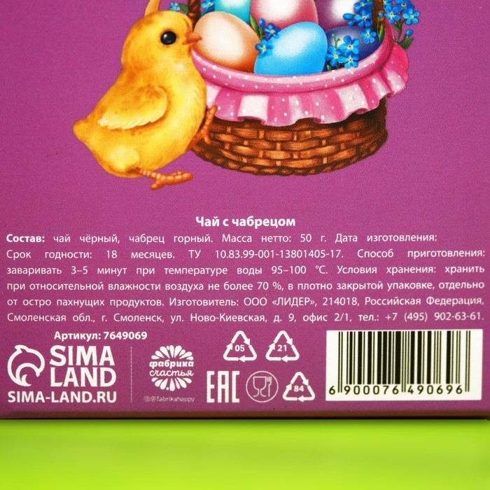 Чай чёрный с чабрецом «Счастливая Пасха», 50 г.