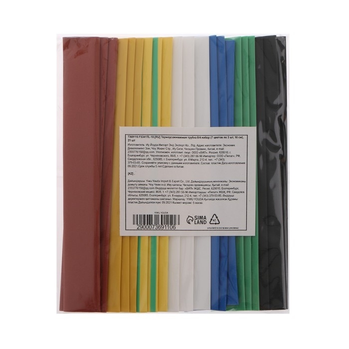 Термоусаживаемая трубка 8/4 набор (7 цветов по 3 шт, 10 cм), 21 шт