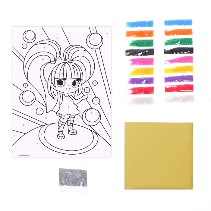 С этим волшебным набором ваш ребёнок сможет создать картину из цветного песка. Фреска станет отличным украшением детской комнаты и предметом гордости маленького художника.