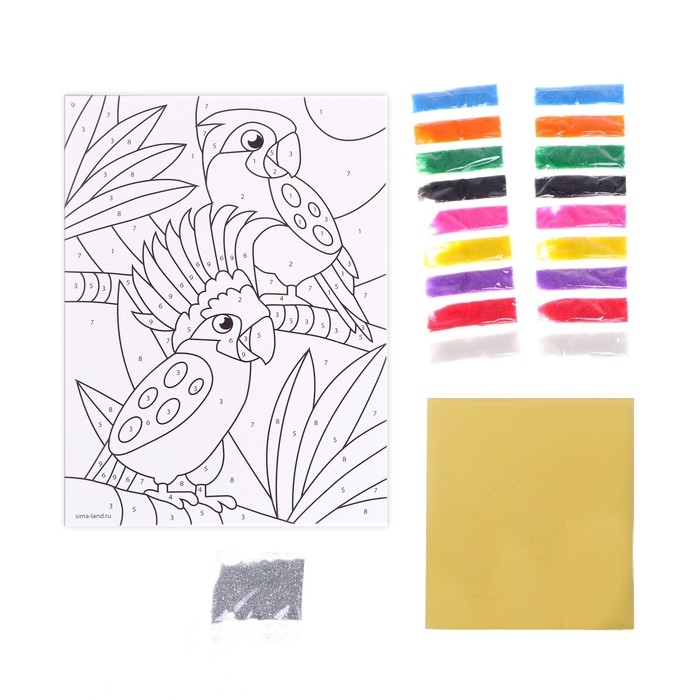 С этим волшебным набором ваш ребёнок сможет создать картину из цветного песка. Фреска станет отличным украшением детской комнаты и предметом гордости маленького художника.