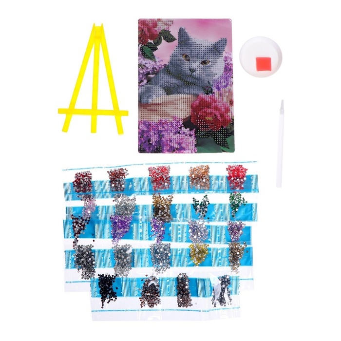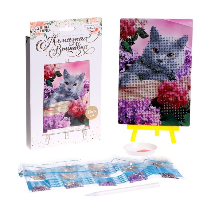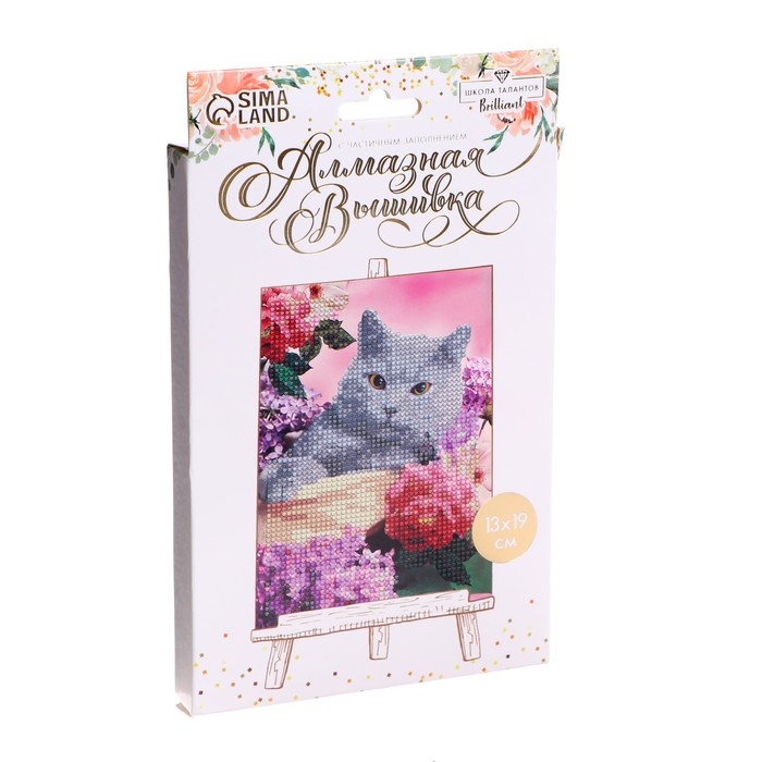 Алмазная мозаика с частичным заполнением на подставке «Кот в цветах», 13 х 19 см, картон