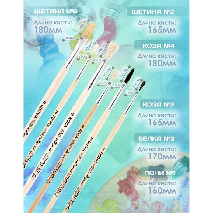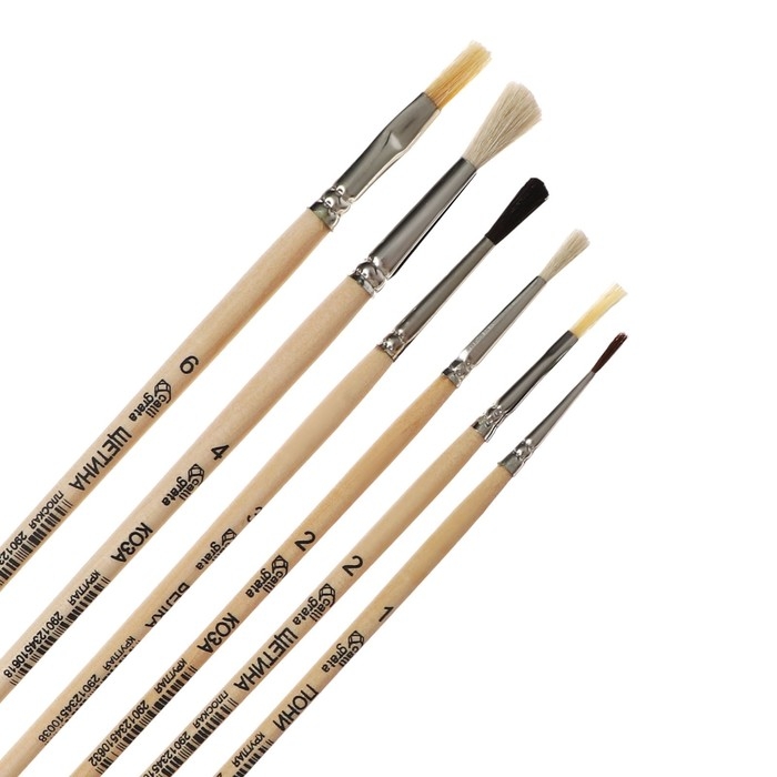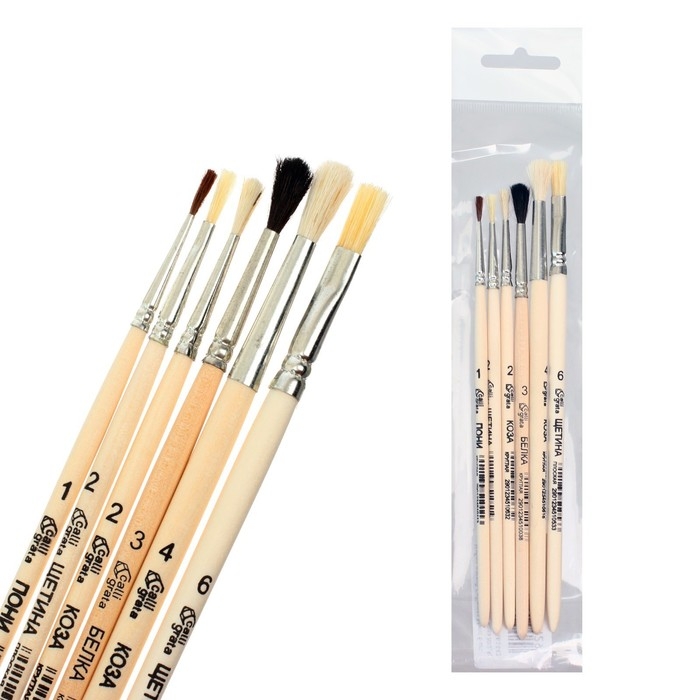 Набор кистей 6 штук Calligrata (круглые: пони №1; белка №3, коза №2,4; плоские: щетина №2,6) ЭКОНОМ