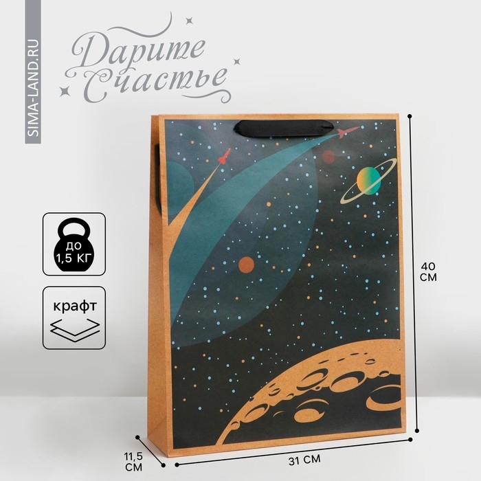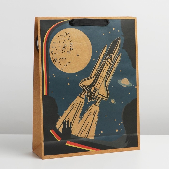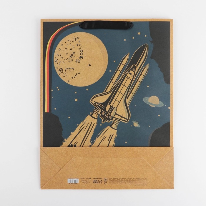 Пакет подарочный крафтовый вертикальный, упаковка, «Космос», L 31 х 40 х 11,5 см