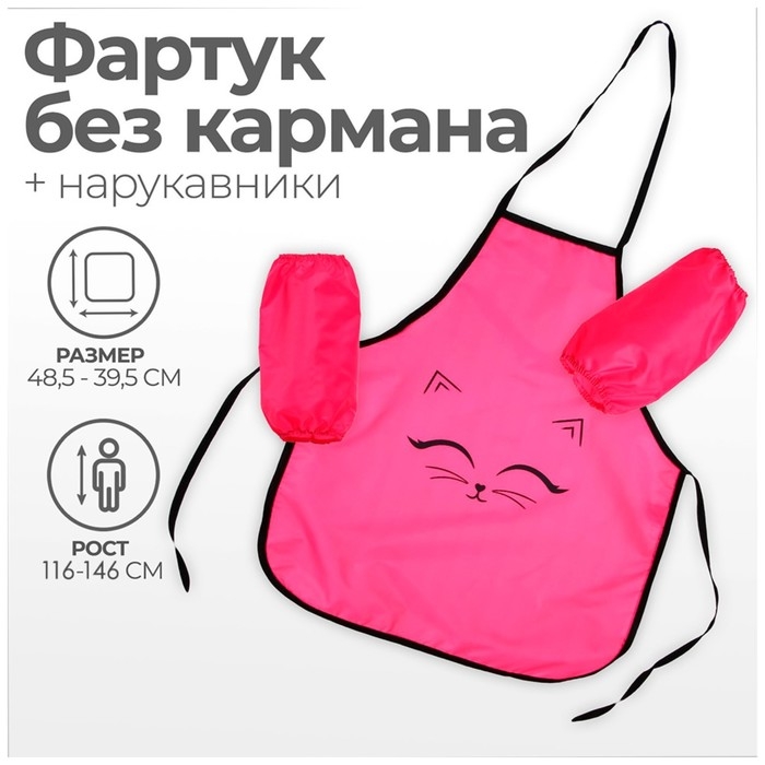 Фартук для труда + нарукавники, 485 х 395/250 х 160 мм, рост 116-146 см, Calligrata, "Котик"
