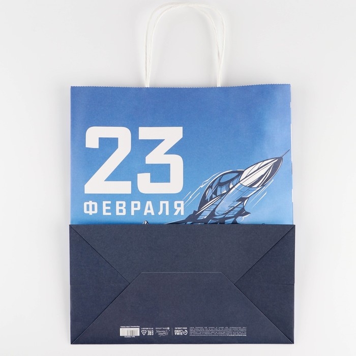 Пакет подарочный крафтовый, упаковка, «С Днем защитника Отечества», 28 х 32 х 15 см