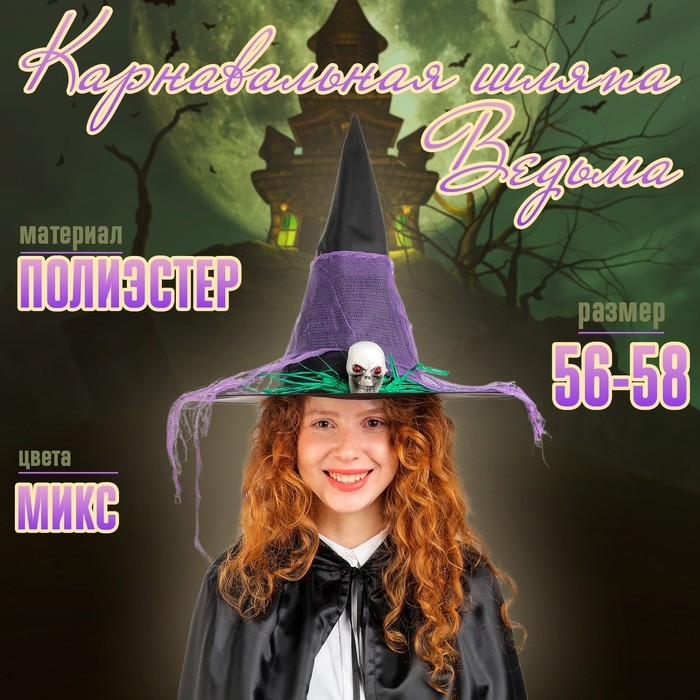 Карнавальная шляпа «Ведьма», цвета МИКС