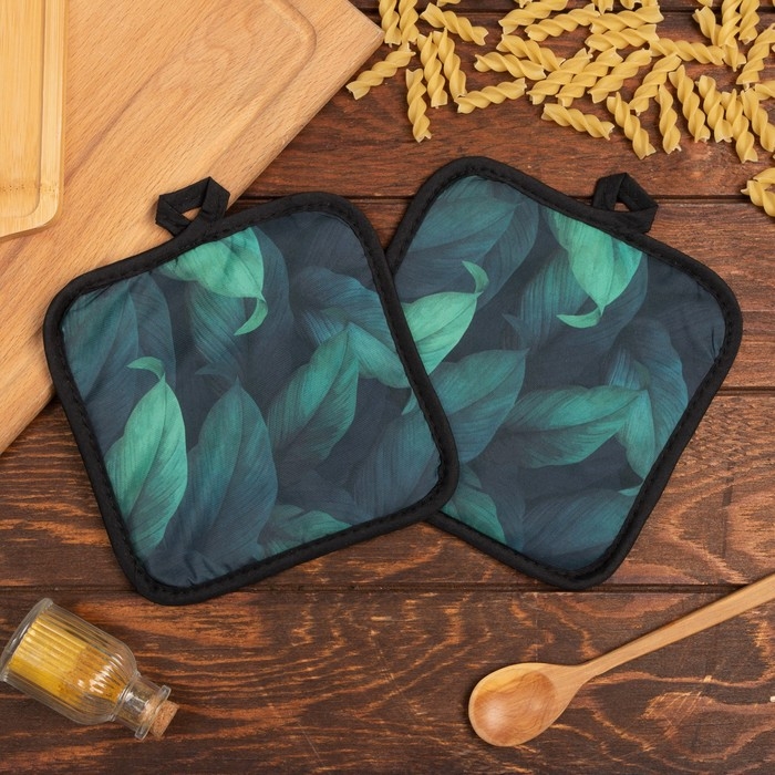 Кухонный набор (2 предмета) Этель «Листья», прихватка 17х17 см, 100% п/э