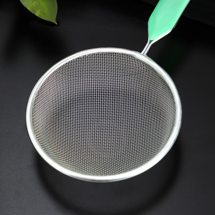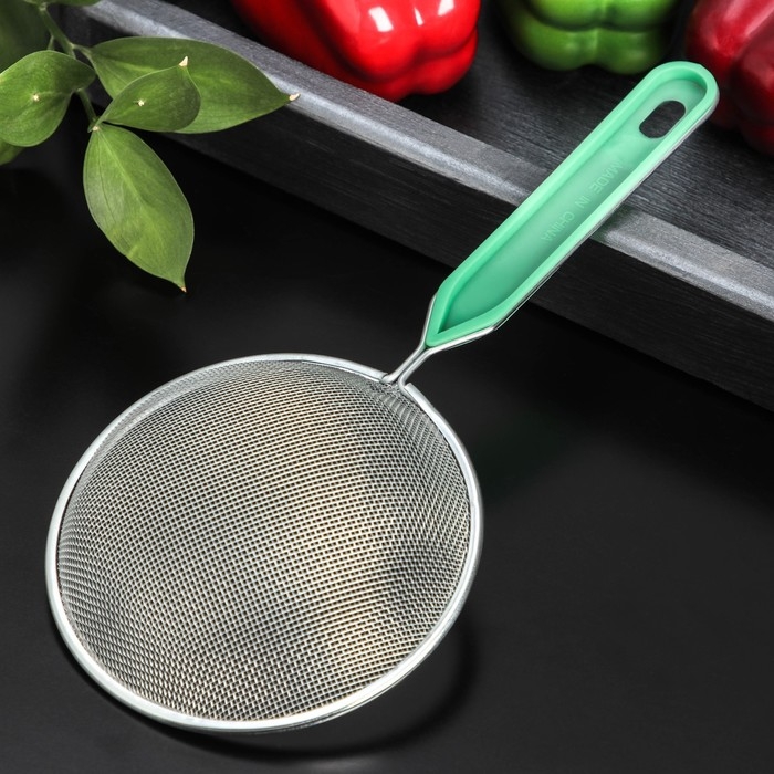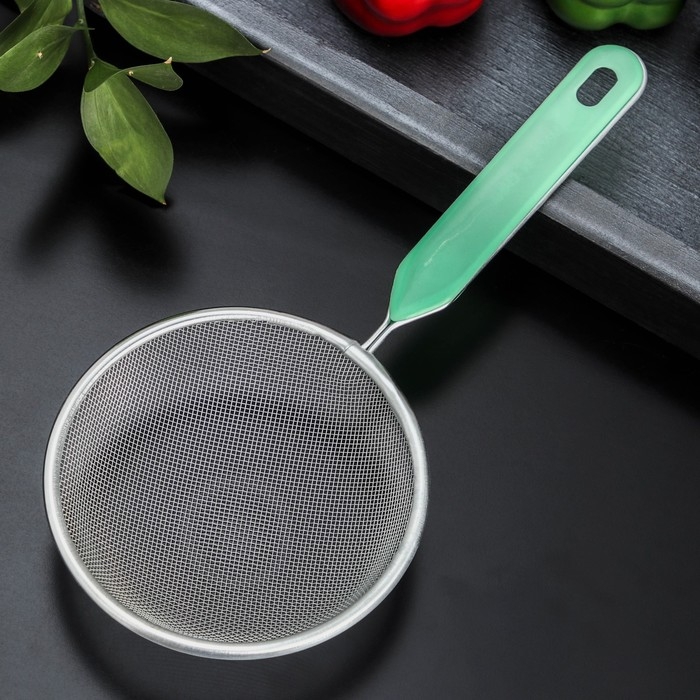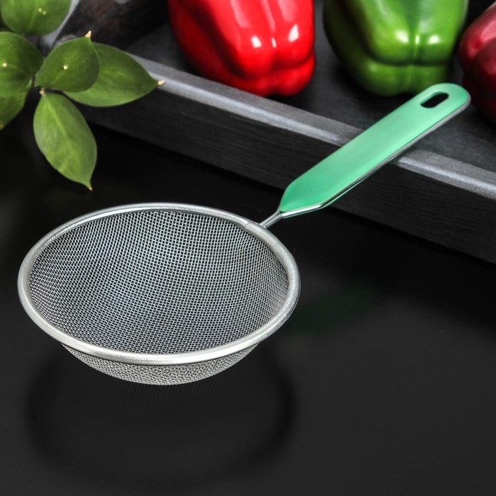 Сито для просеивания с ручкой Доляна «Хозяюшка», d=12 см, цвет зелёный