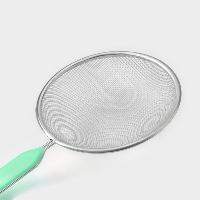 Сито для просеивания с ручкой Доляна «Хозяюшка», d=12 см, цвет зелёный