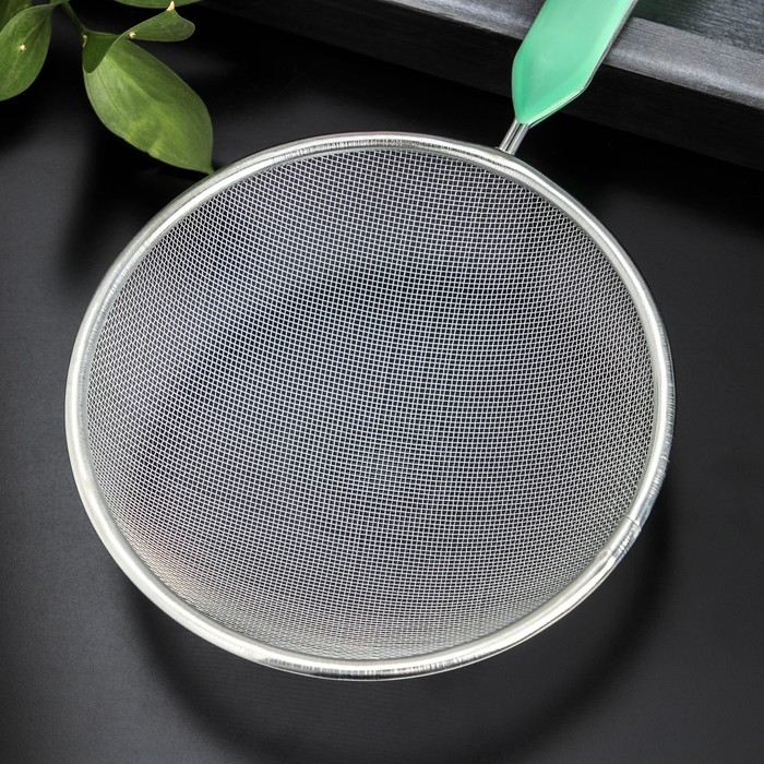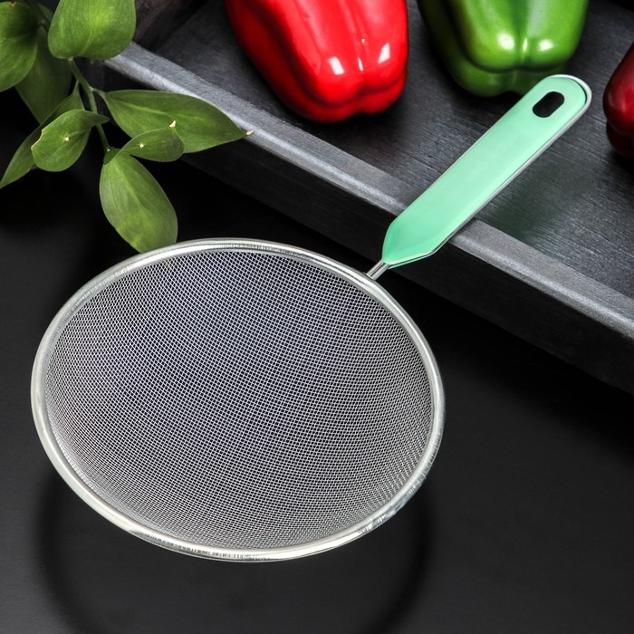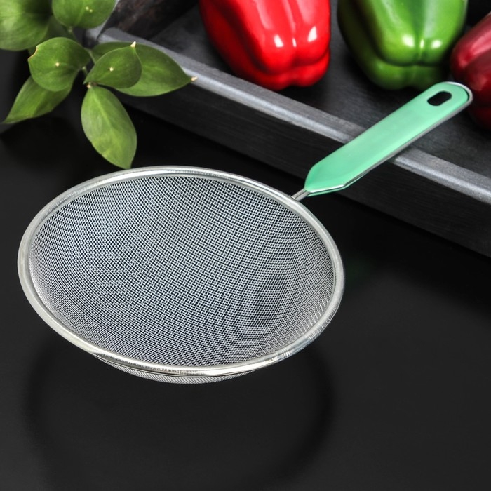Сито для просеивания с ручкой Доляна «Хозяюшка», d=16 см, цвет зелёный