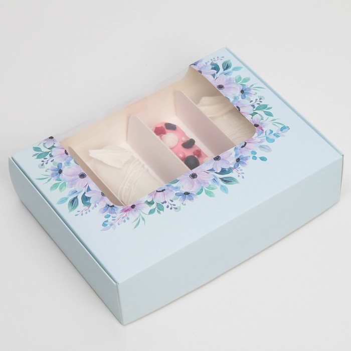 Коробка для эклеров, кондитерская упаковка, 4 вкладыша, «Фиалки», 20 х 15 х 5 см