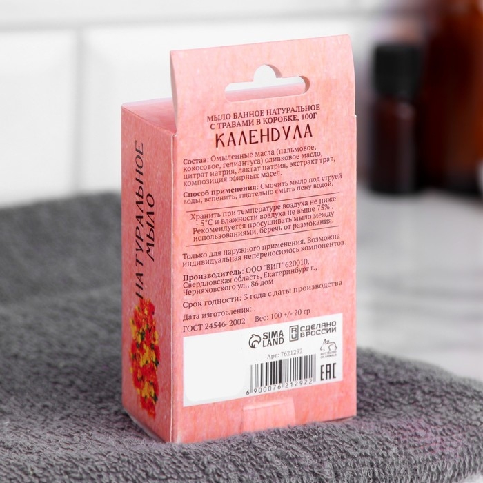 Мыло банное натуральное с травами в коробке "Календула" 100 г Добропаровъ