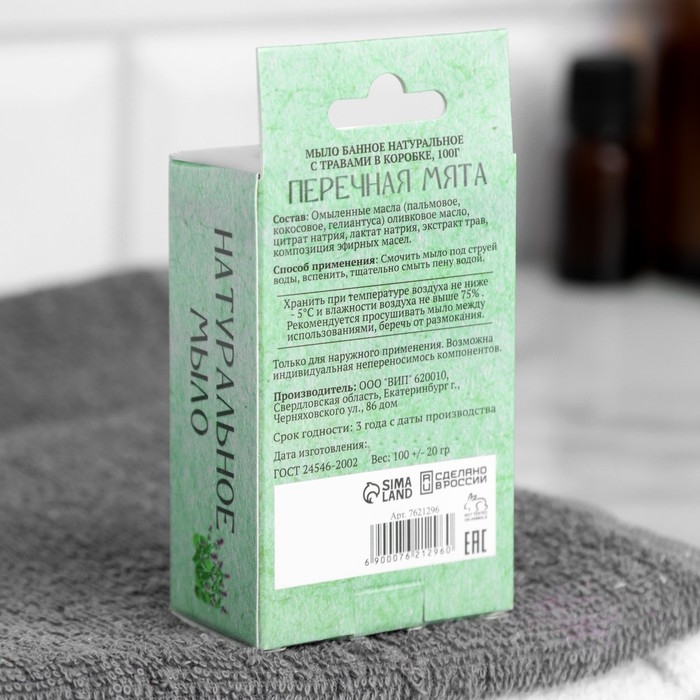 Мыло банное натуральное с травами в коробке "Мята перечная" 100 г Добропаровъ
