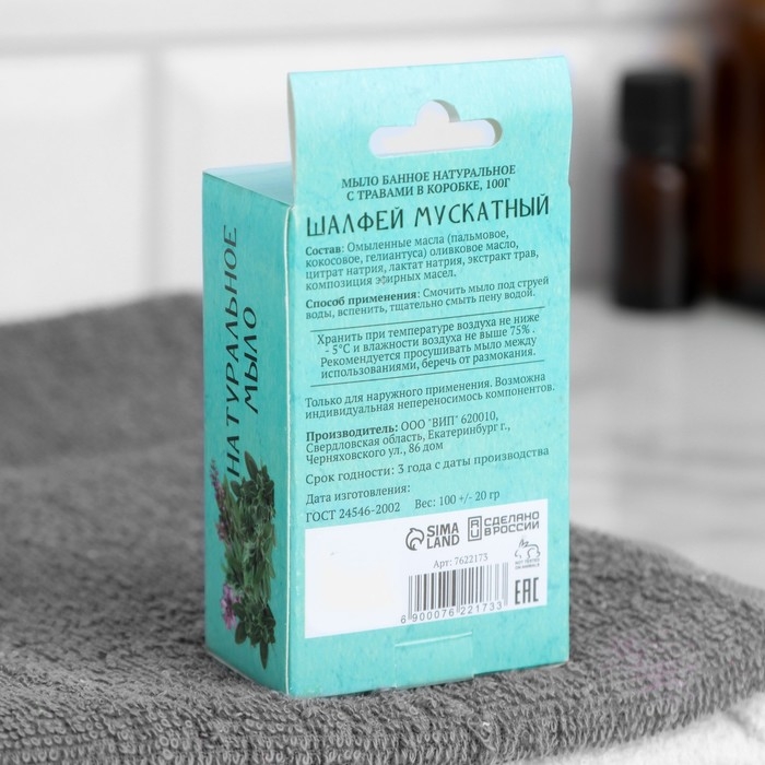 Мыло банное натуральное с травами в коробке "Шалфей мускатный" 100 г Добропаровъ