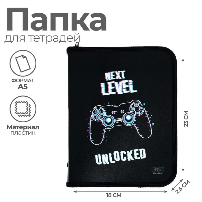 Папка для тетрадей А5, 180 х 230 х 25 мм, молния вокруг, пластиковая 0.5, ПМ-А5-04 Calligrata "Гейм"