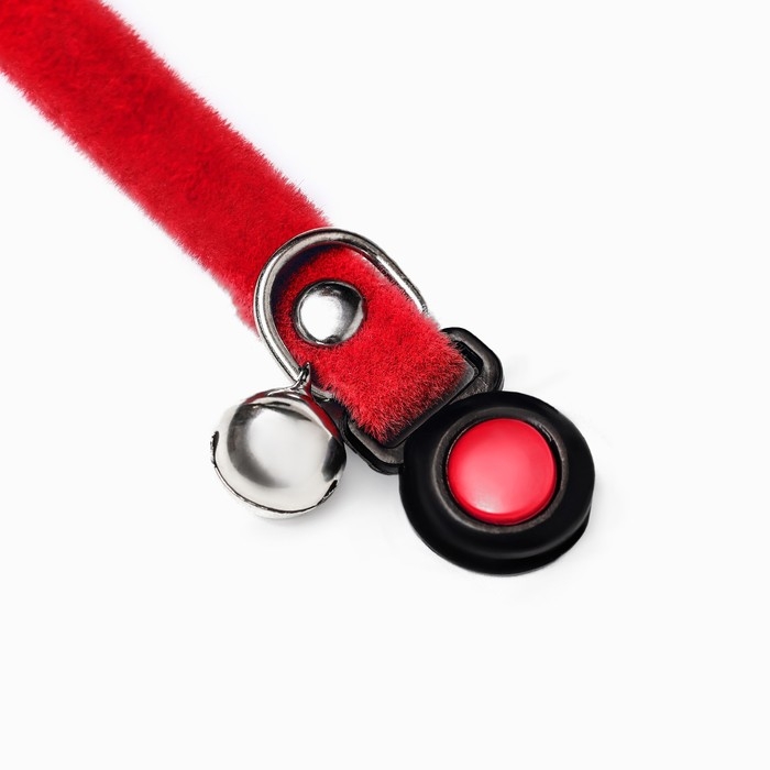 Ошейник кошачий мягкий с бубенчиком, 30 х 1 см, текстиль, красный