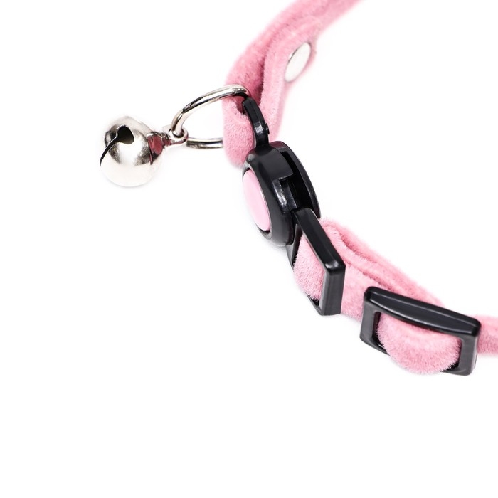 Ошейник кошачий мягкий с бубенчиком, 30 х 1 см, текстиль, розовый