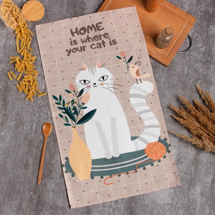 Полотенце Этель "Белая кошечка" 40х73 см, саржа, 100% хл, 190 г/м2