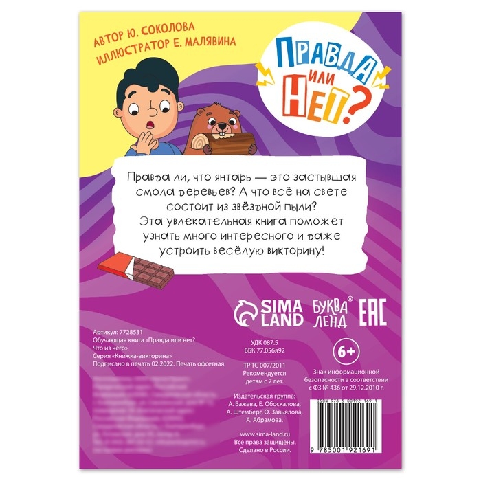Обучающая книга «Правда или нет? Что из чего», 44 стр.