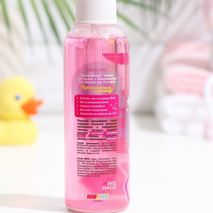 Спрей для лёгкого расчёсывания Delicare "Сказочный Патруль" с блёстками – это яркое и эффективное средство для ухода за детскими волосами, которое не только облегчает процесс расчёсывания, но и добавляет волосам волшебное сияние.