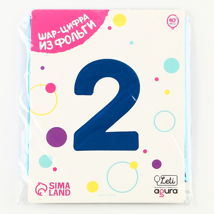 Шар фольгированный 40" «Цифра 2», цвет синий Slim