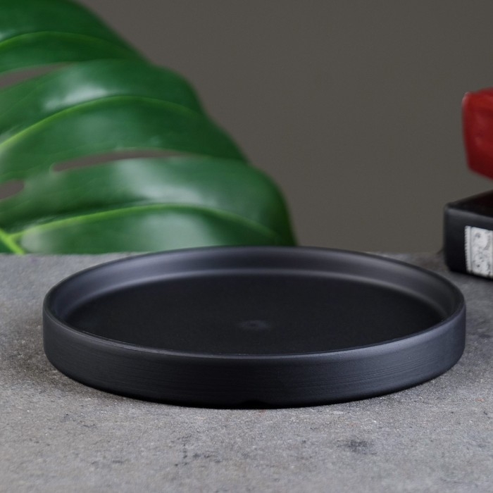Поддон керамический для цветочного горшка до 14,5 см, черный, 15,5 см