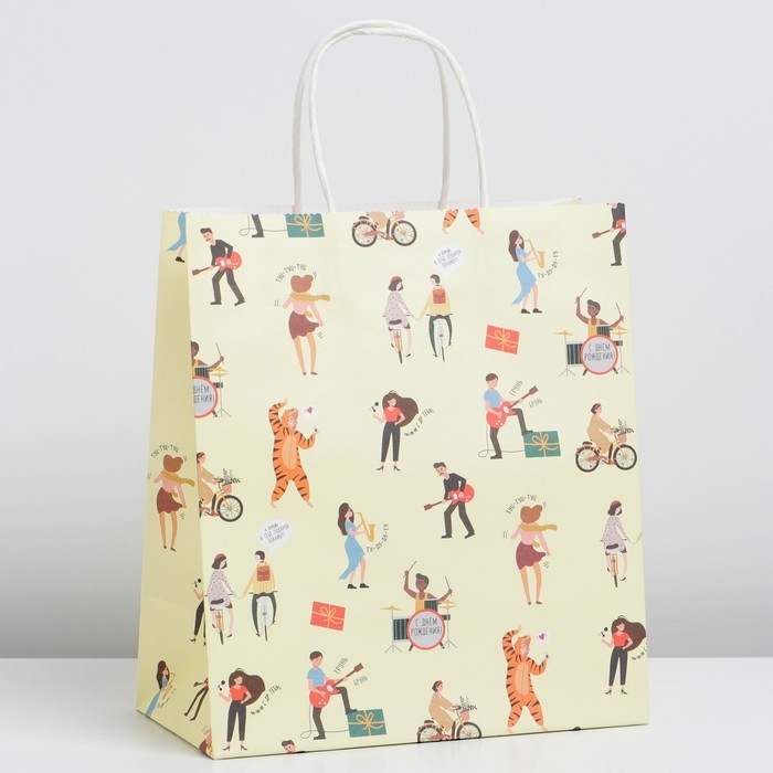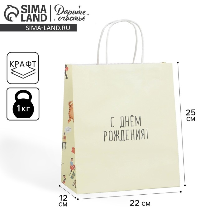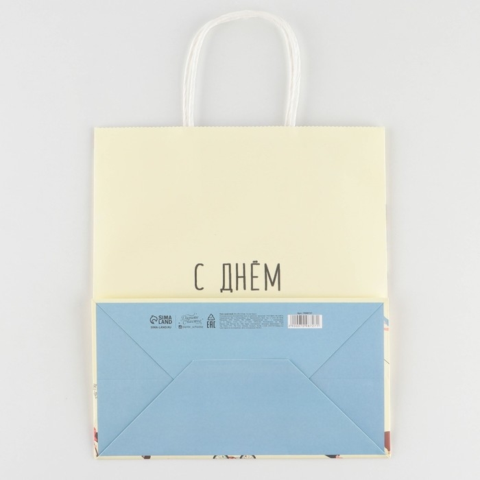 Пакет подарочный крафтовый, упаковка, «С днём рождения», 22 х 25 х 12 см