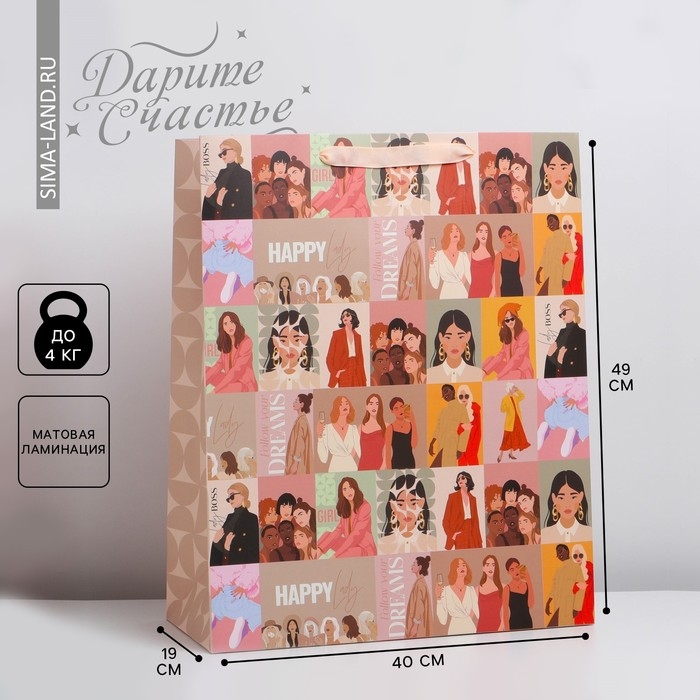 Пакет подарочный ламинированный вертикальный, упаковка, «Девушки», XL 40 х 49 х 19 см