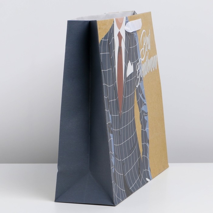 Пакет подарочный крафтовый вертикальный, упаковка, «Best gentleman», M 30 х 25.5 х 9 см