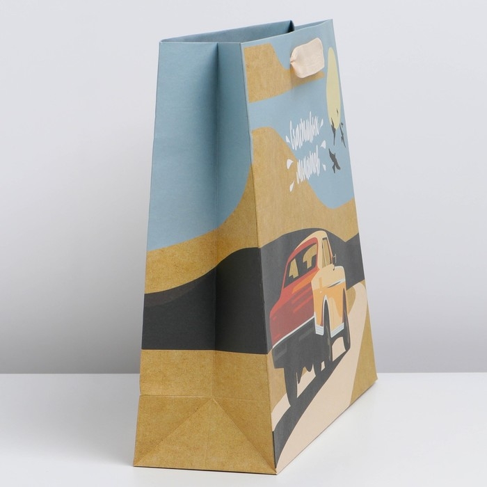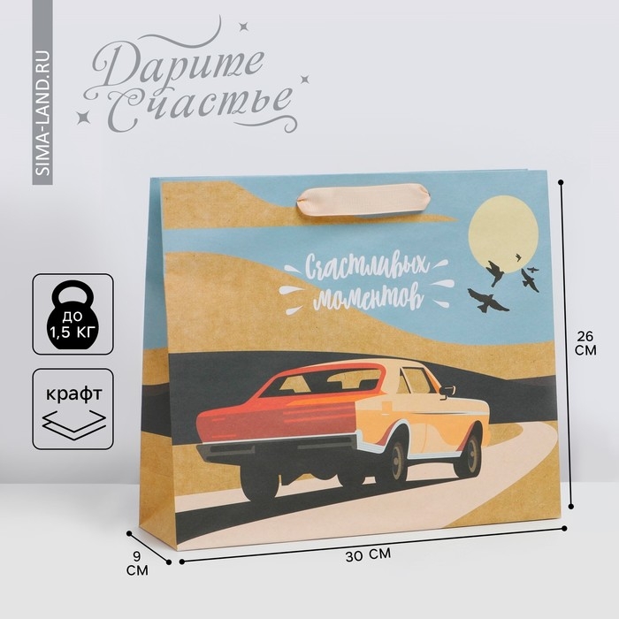 Пакет подарочный крафтовый вертикальный, упаковка, «Счастливых моментов», M 30 х 25.5 х 9 см