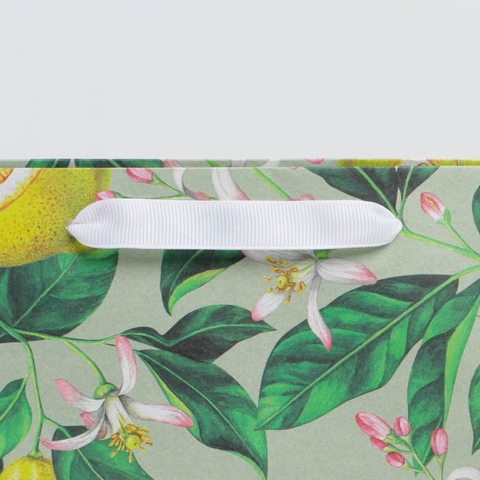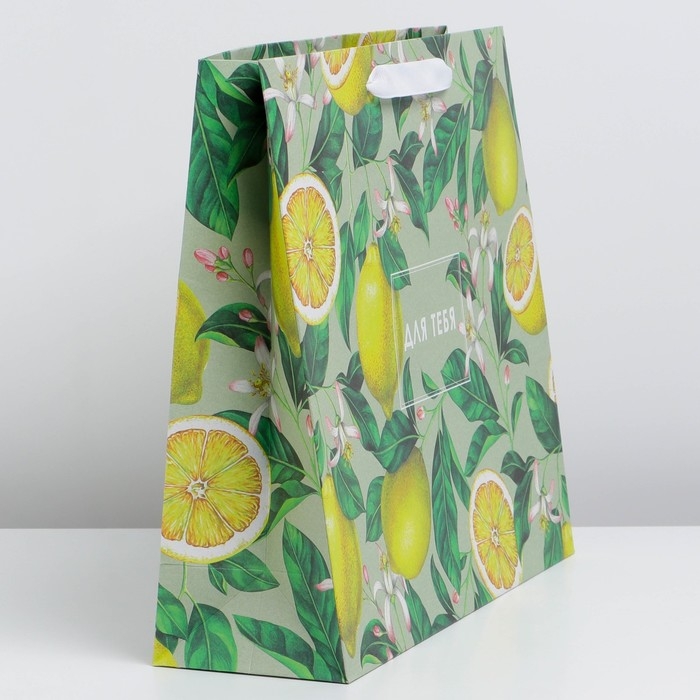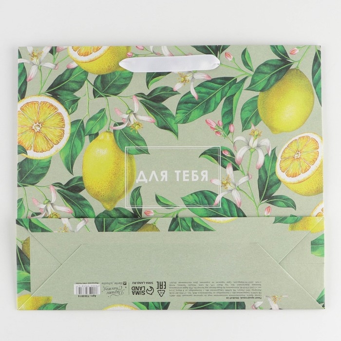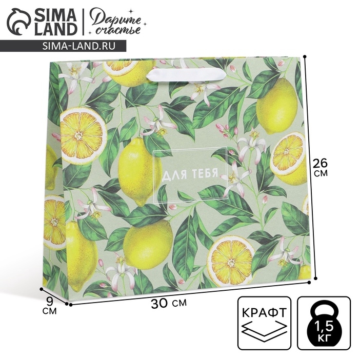 Пакет подарочный крафтовый горизонтальный, упаковка, «Лимончики», M 30 х 26 х 9 см