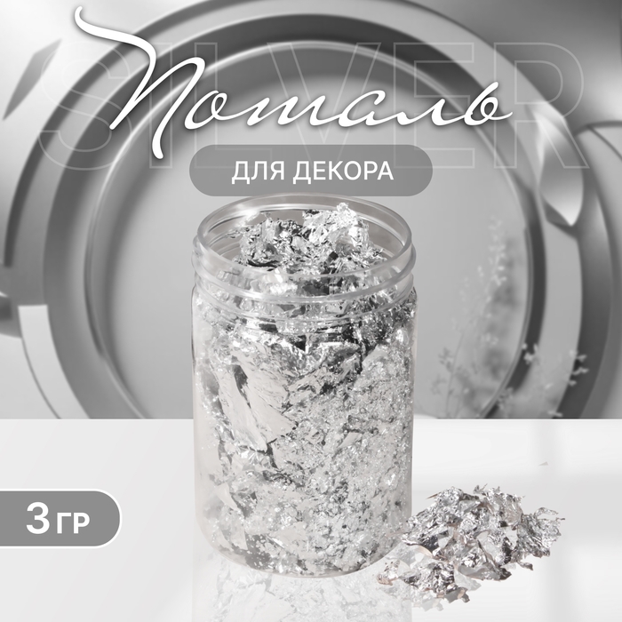 Поталь для декора ногтей, 3 гр, цвет серебристый