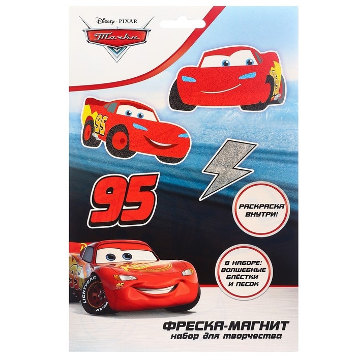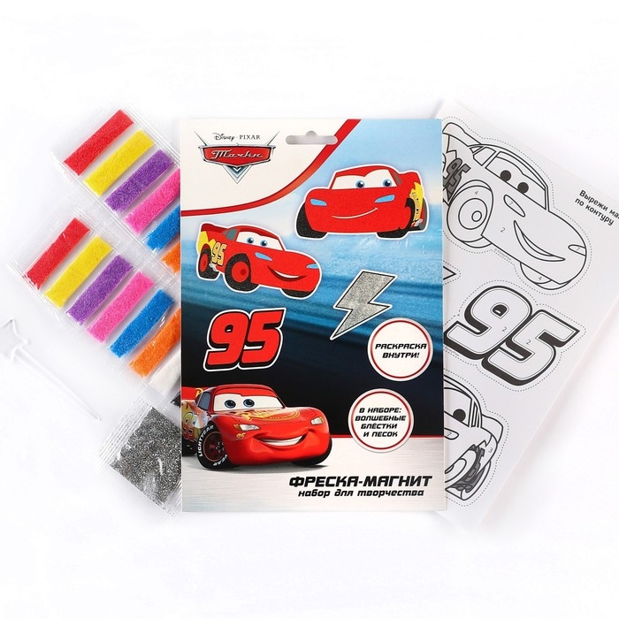 Набор для творчества: фреска-магнит, блёстки, песок, раскраска, Тачки