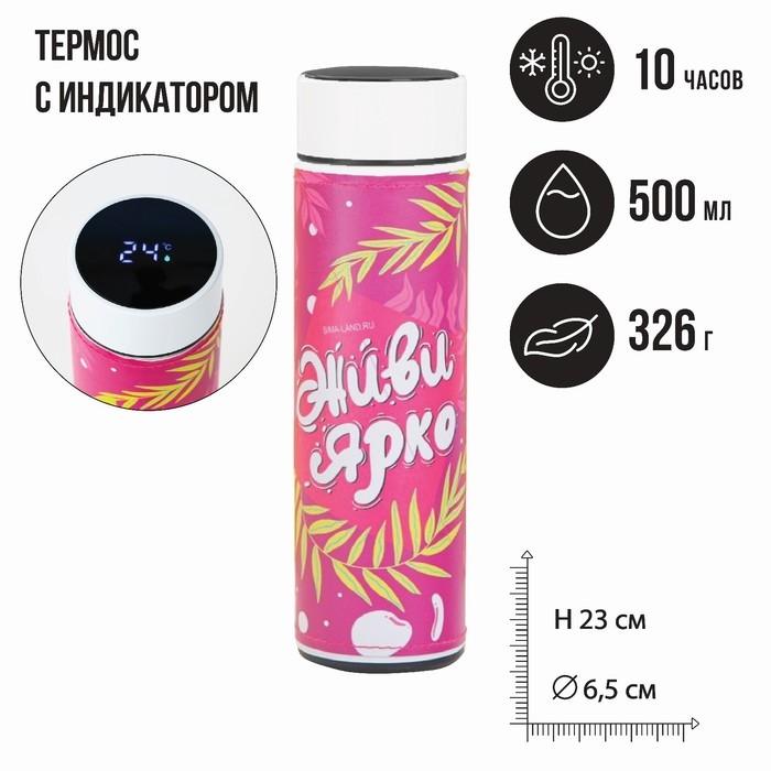 Термос с индикатором температуры «Живи ярко», 500 мл, сохраняет тепло 8-10 ч