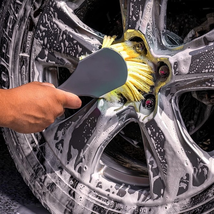Щётка для очищения дисков, колес, бампера. Высококачественный материал хорошо справляется с многоразовым использованием. Он может без проблем очищать шины. Ручка с нескользящей конструкцией позволяет легко сжимать и управлять, повышает эффективность очистки.