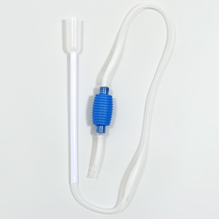 Аквариумный сифон удобен для ручного использования и обладает большой силой всасывания. Выполнен из пластика. У входного отверстия имеется сито внутри, которое собирает остатки корма и мусор с грунта. Чистит грунт и воду одновременно.