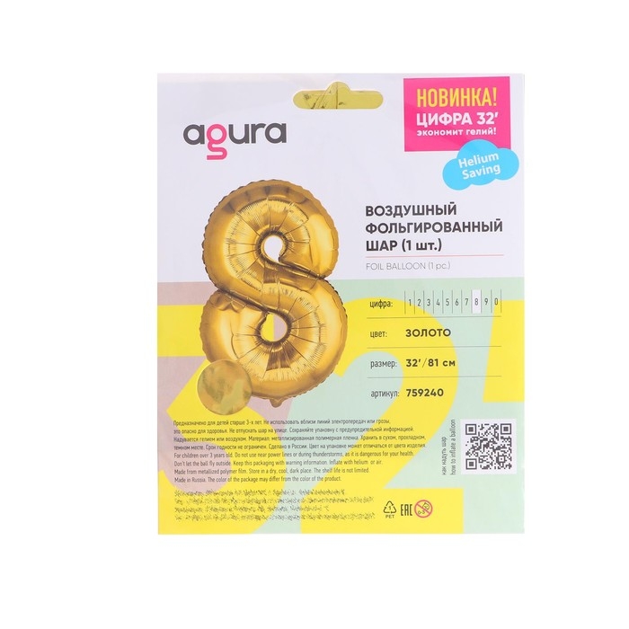 Фольгированный шар в виде цифры — оригинальный способ поздравить с днём рождения. При необходимости соберите число из двух шаров-цифр. Отлично подойдёт в качестве реквизита для фотосессии или оформления помещения.