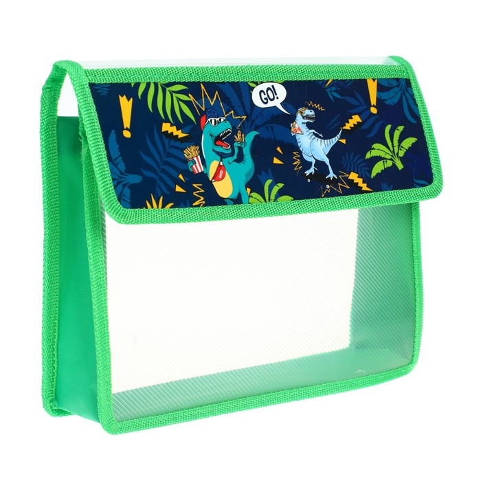 Папка для тетрадей А5 (230 х 190 х 50 мм), с клапаном на липучке, пластик/текстиль, Calligrata, "Дино"