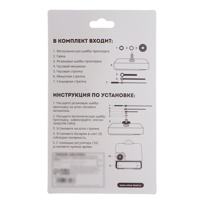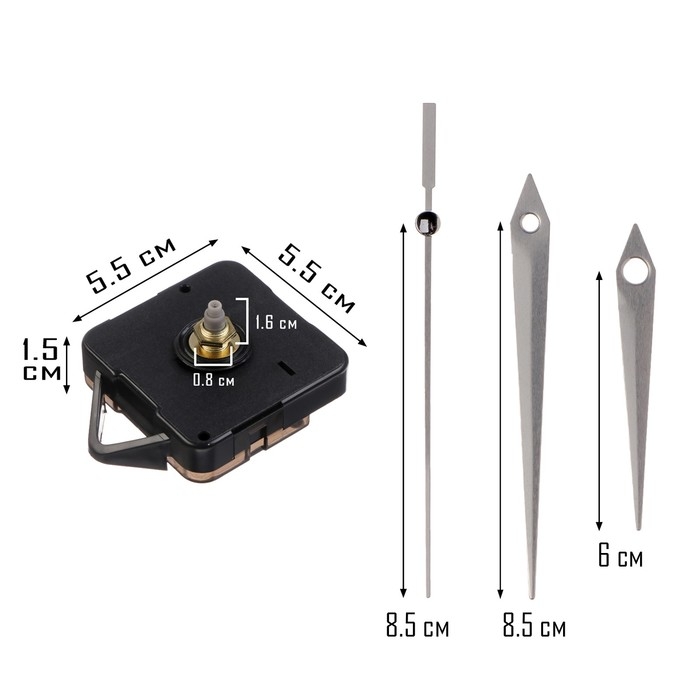 Часовой механизм со стрелками "Соломон-5", плавный ход, шток 16 мм, стрелки 70/95/110 мм