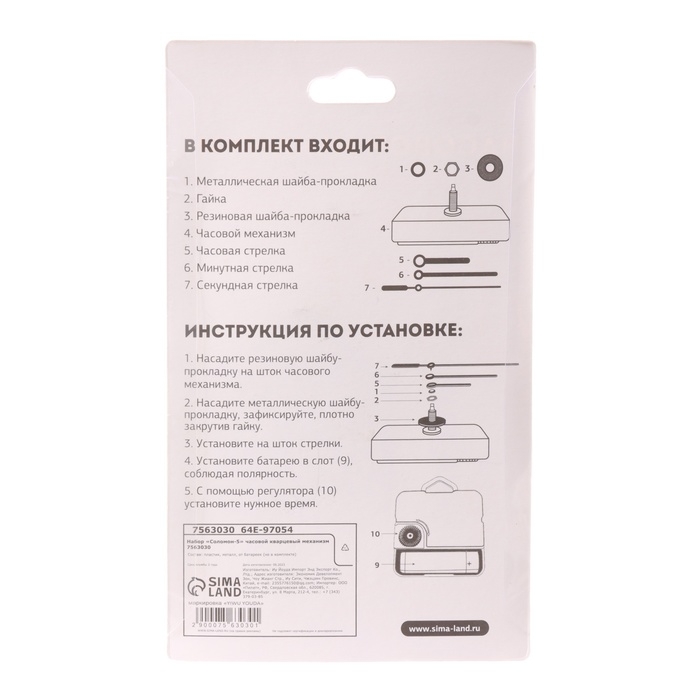 Часовой механизм со стрелками "Соломон-5", плавный ход, шток 16 мм, стрелки 70/95/115 мм