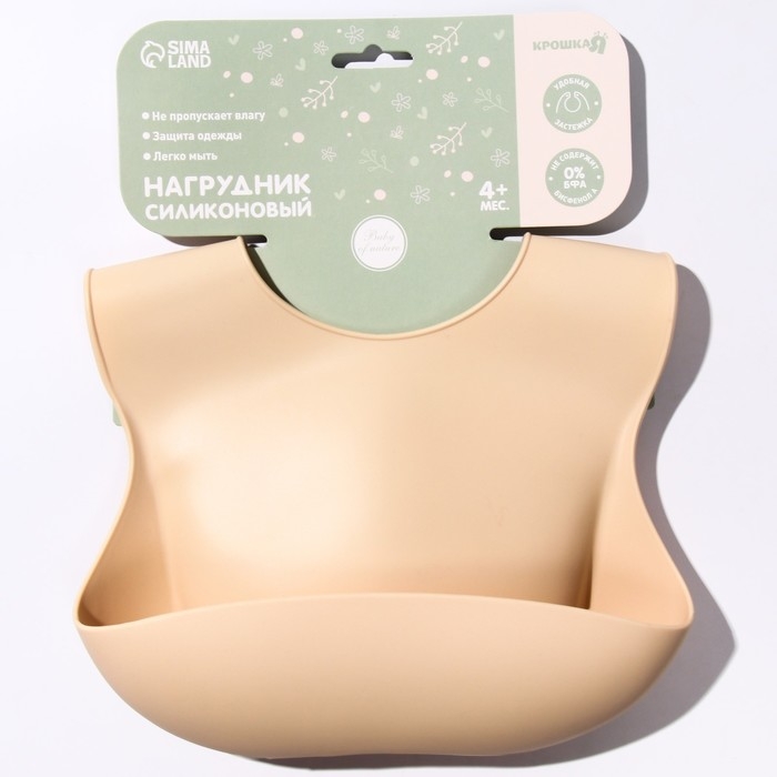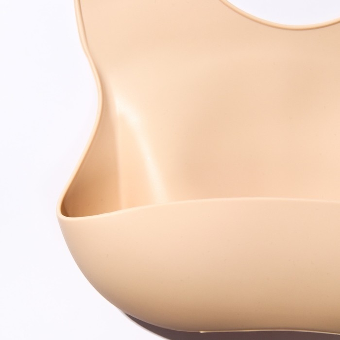 Нагрудник для кормления силиконовый с карманом, цвет бежевый