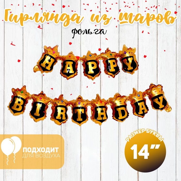 Шар фольгированный 14" «Надпись: с днём рождения», золото-чёрный