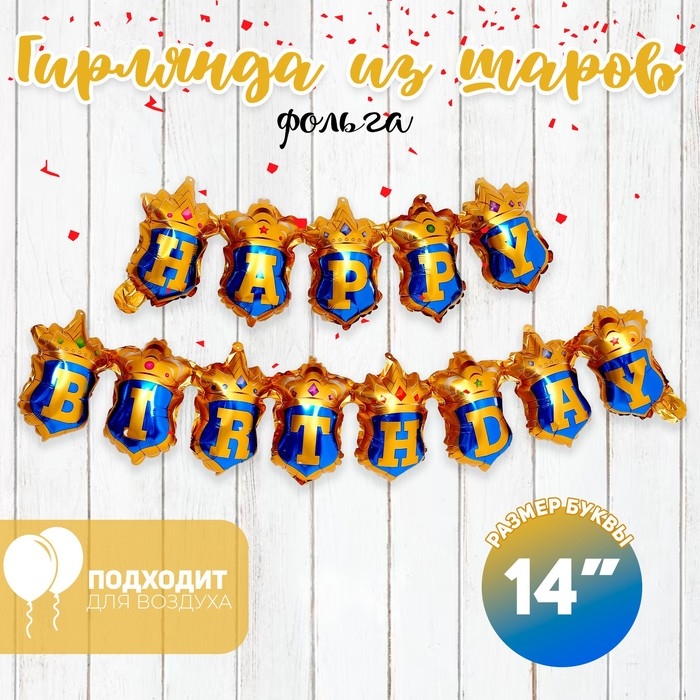 Шар фольгированный 14" «Надпись: с днём рождения», золото-бирюза