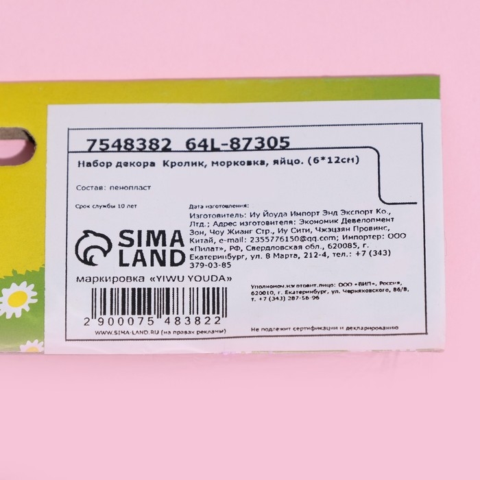 Набор декора Кролик, морковка, яйцо. (6*12см)